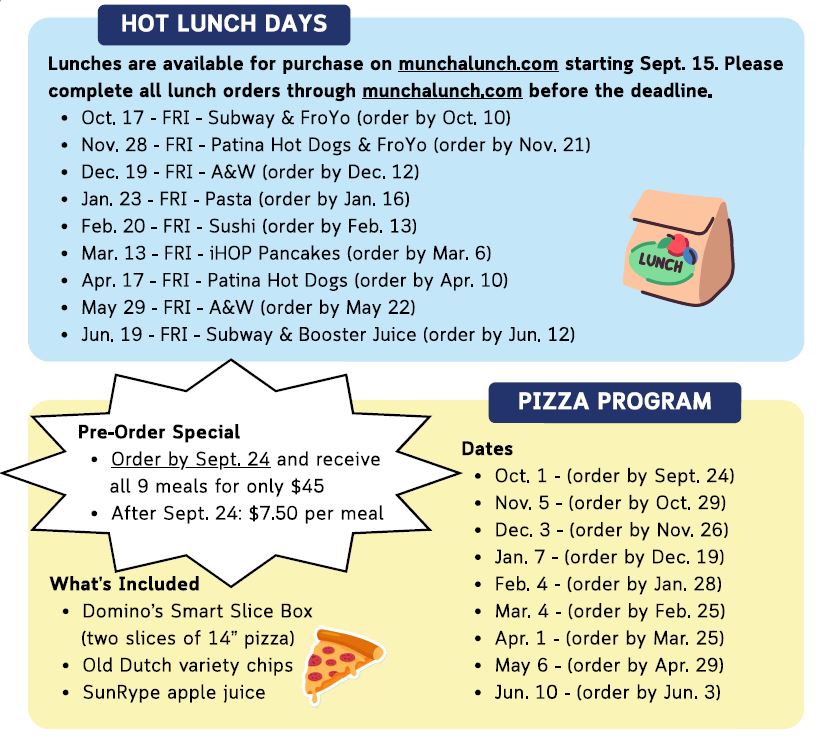 The Hot Lunch program is one of our ongoing fundraising initiatives throughout the school year.